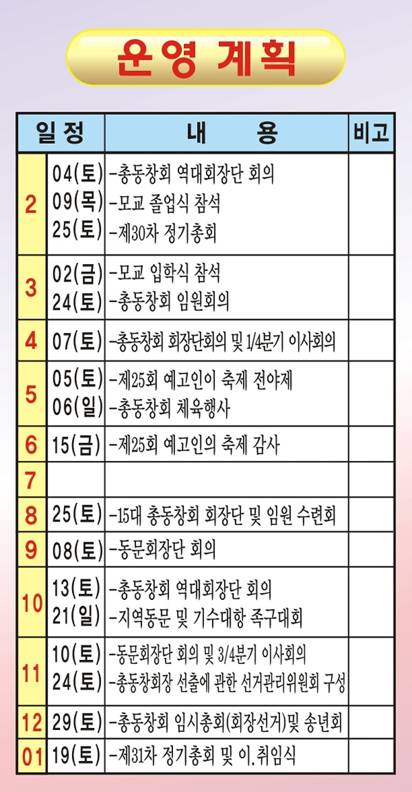 2012년 총동창회 운영계획