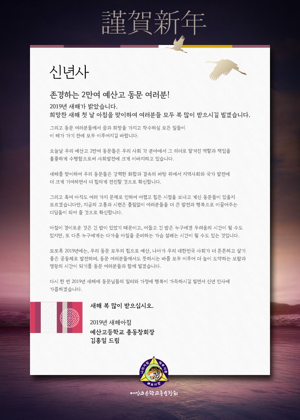 예산고총동창회 2019 신년사