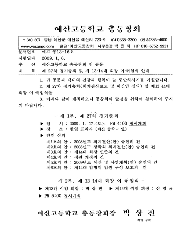 제 27차 정기총회 및 제13·14대 회장 이·취임식안내