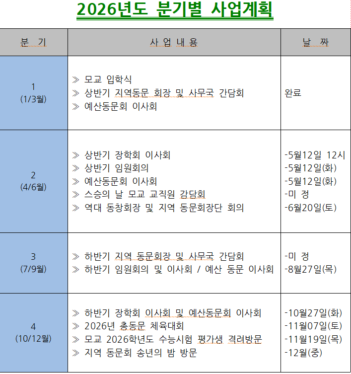 2026년도 분기별 사업계획표 > 공지사항